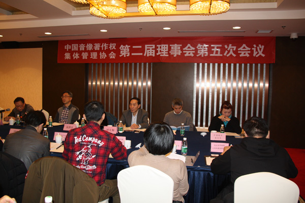 2018年1月17日中国音像著作权集体管理协会第二届理事会第五次在京召开,18家理事单位代表和个人出席了本次会议,国家新闻出版广电总局社会服务处处长宋萍萍列席本次会议?;嵋橛尚崂硎鲁ぶ芙ǔ敝鞒?,首先由协会总干事邹建华向理事汇报2017年总体工作,副总干事刘文和汇报协会脱钩工作及协会章程修改说明。然后,请理事们投票表决,审议通过了《协会章程》(草案)、《关于授权秘书处履行<协会章程>(草案)第九条第三款规定的提议》、《关于设立监事及推荐监事人选的提议》以及“关于增补北京竹书房文化传播有限责任公司”为理事等重要事项?;嵋樽詈螅硎鲁ぶ芙ǔ鼻康?,协会要转换观念,加强服务会员的意识和能力,增强会员的主人翁意识,建立和完善协会的治理和运行机制;同时进一步发展会员,扩大版权基??;积极妥善处理好协会历史遗留问题。