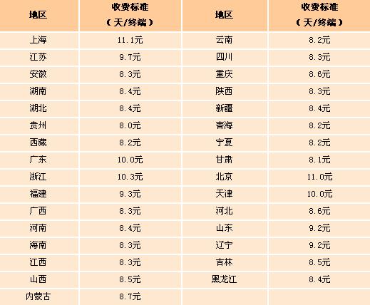 中国音像著作权集体管理协会是经国家版权局批准成立的中国大陆地区唯一的音像著作权集体管理组织,依法有权代表权利人对使用音乐电视(录影)作品的卡拉OK经营者收取著作权使用费。根据国家版权局2006年1号公告,卡拉OK版权使用费收费工作从2007年1月1日起开始。现结合全国抽样计次数据和各地区的具体情况,将2008年全国各地区著作权使用费收费标准公告如下: